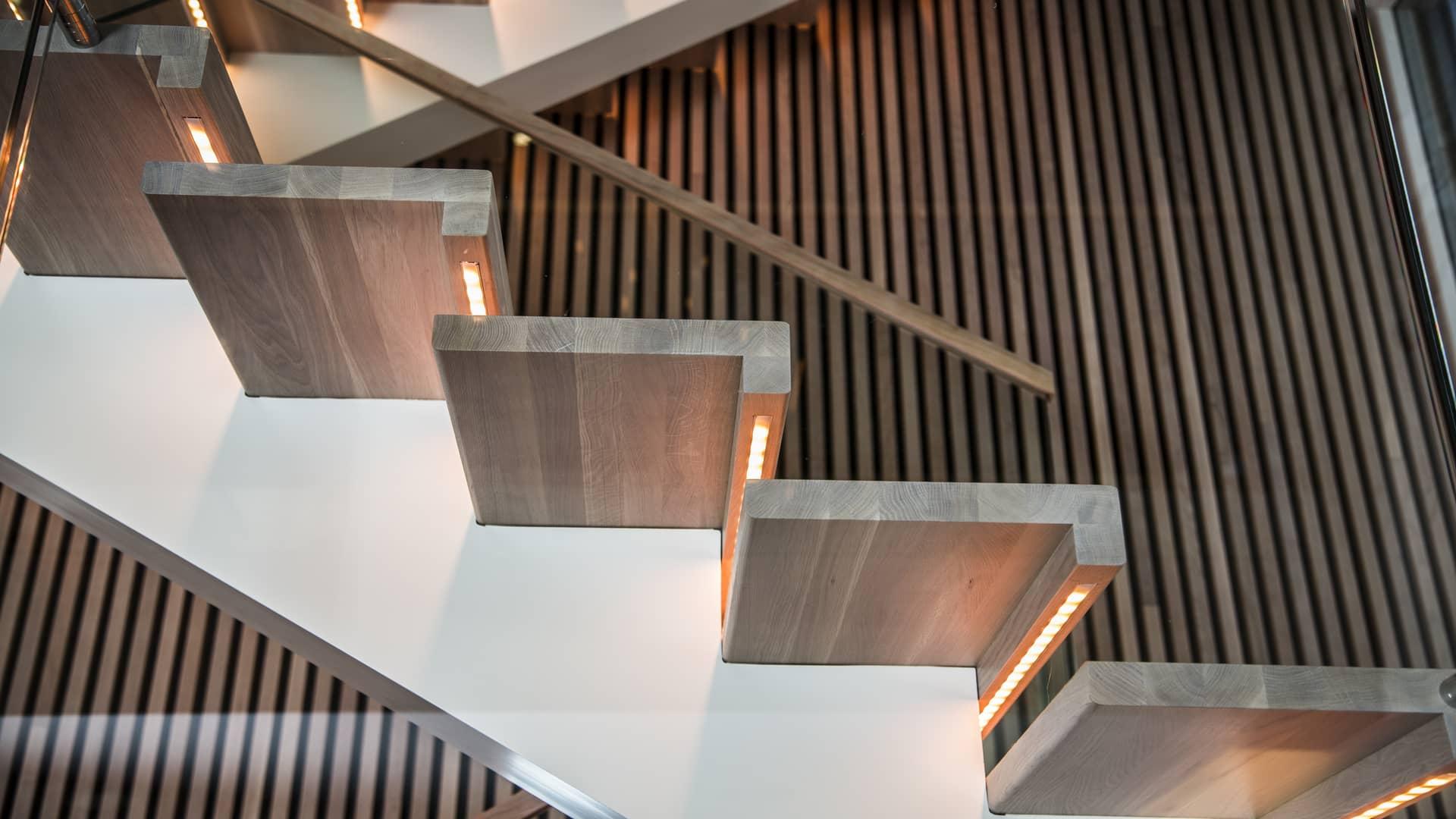 Valget av trapp kan også ha mye å si for både lyd, lys og støv. Når det gjelder lyd, vil en trapp med tette trappetrinn være mer lyddempende enn en åpen trapp. Har du i tillegg tett rekkverk, og ikke f. eks spiler, vil det understreke denne effekten ytterligere. En kvalitetstrapp er dessuten et stykke håndverk som lager minimalt med lyd når du går i den – og bidrar derfor positivt til et godt bomiljø med lite støy.