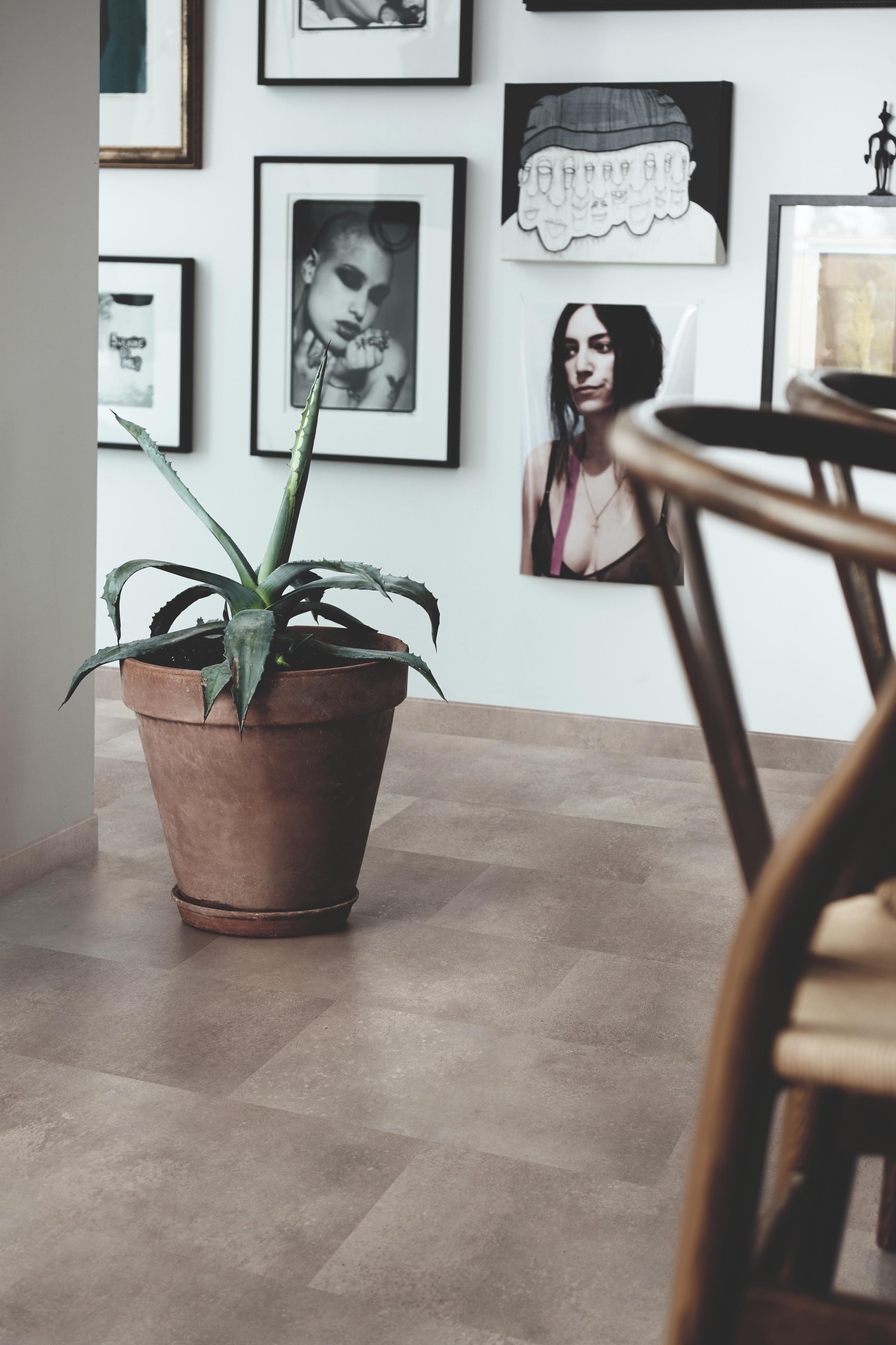 Her er Pergo Aura Pad Pro Concrete Stone vinylgulv avbildet.
