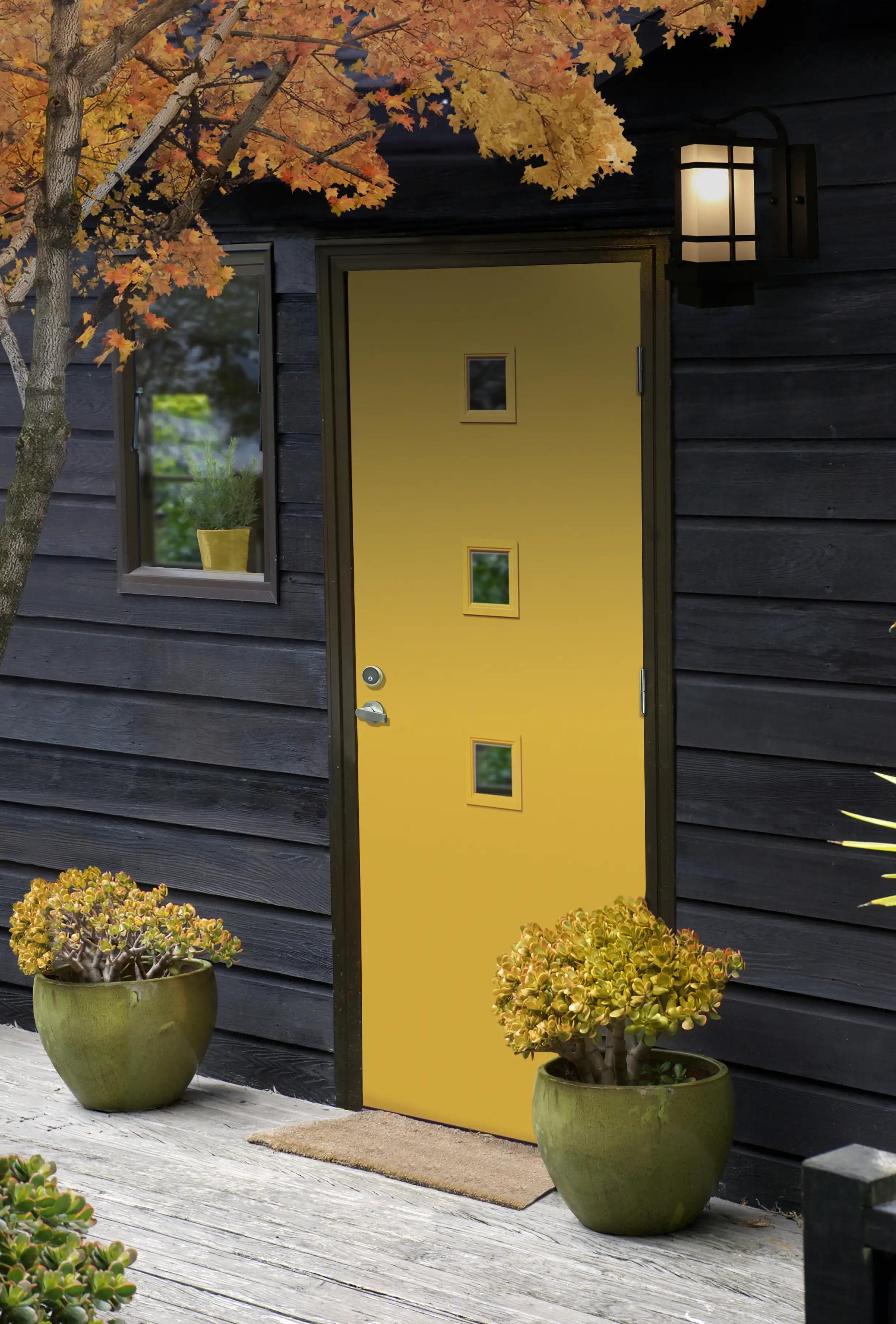 – Velg en kvalitetsdør, gjerne i tre, som får et fint utseende med årene. Velger du farge på inngangsdøren, kan den gjerne ha én farge utvendig og en annen farge innvendig, foreslår Vibecke.