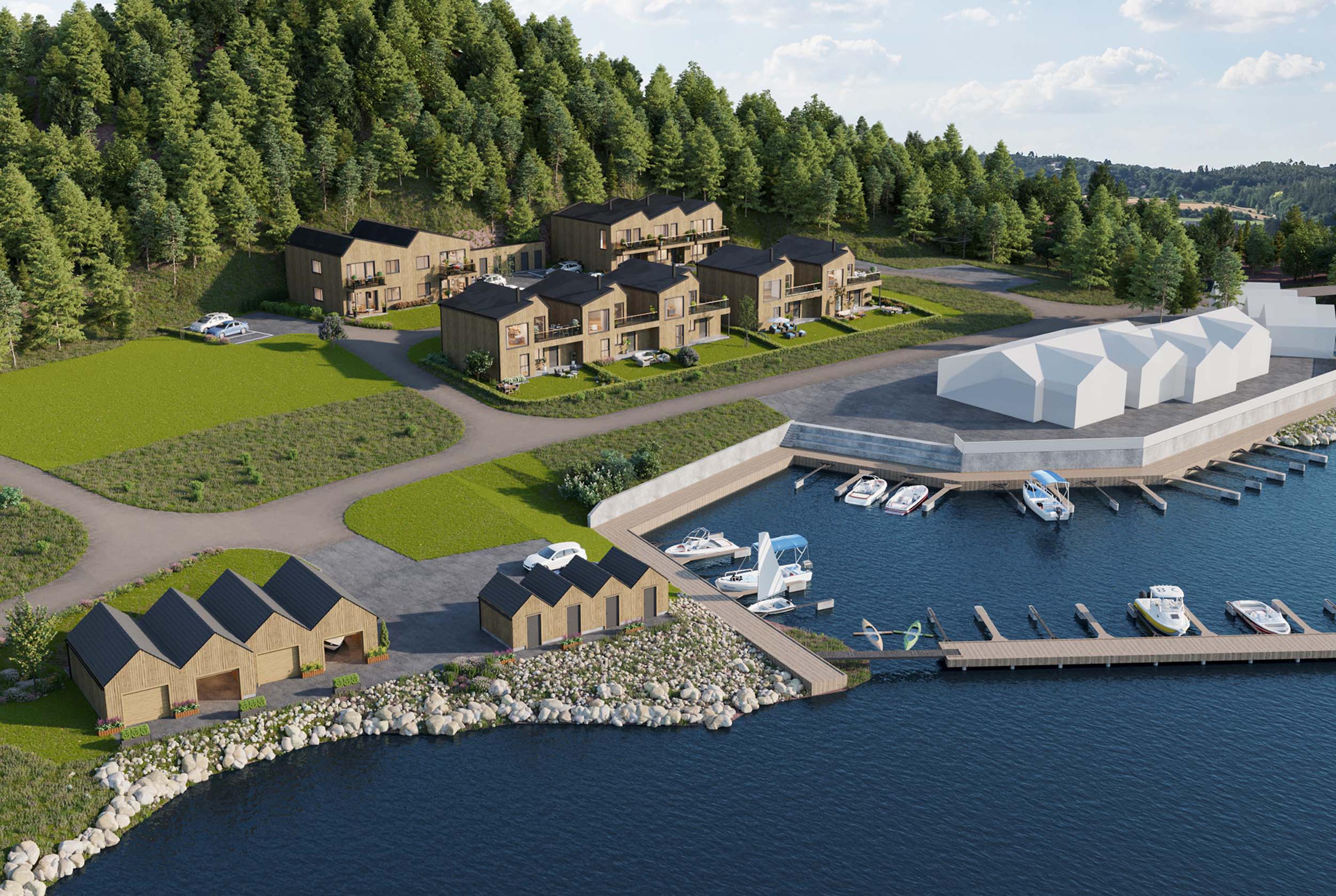 – Fem store tomter for frittliggende eneboliger – Tre eneboliger i rekke med fjordutsikt – Tre rekkehus, alle med mulighet for fire soverom – Leiligheter i firemannsbolig, alle med tre (!) soverom.