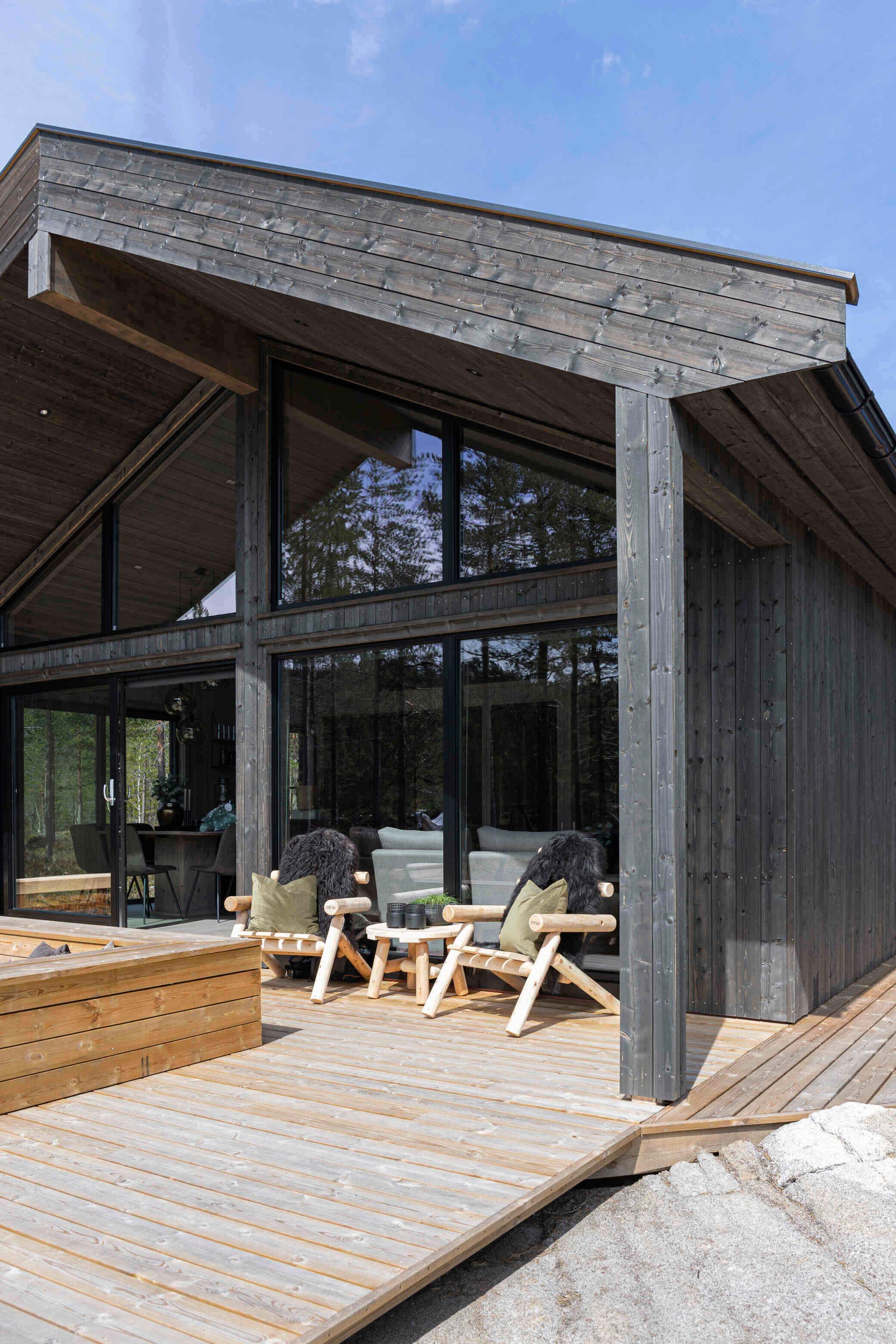 Et godt alternativ for de som ønsker et naturlig og værbitt utseende på hytta er NORD eksteriørkolleksjon. NORD grankledning er 4-sidig beskyttet med miljøvennlig impregnering og trenger ingen videre etterbehandling. Dette gir kledningen en solid og tidløs karakter som passer godt til hytter både på fjellet og ved vann. Den krever minimalt vedlikehold, og den 4-sidige behandlingen bidrar til å forlenge levetiden og redusere behovet for hyppig etterbehandling. Den grå pigmenteringen bevarer treets vakre og naturlige gråfarge samtidig som det er beskyttet.