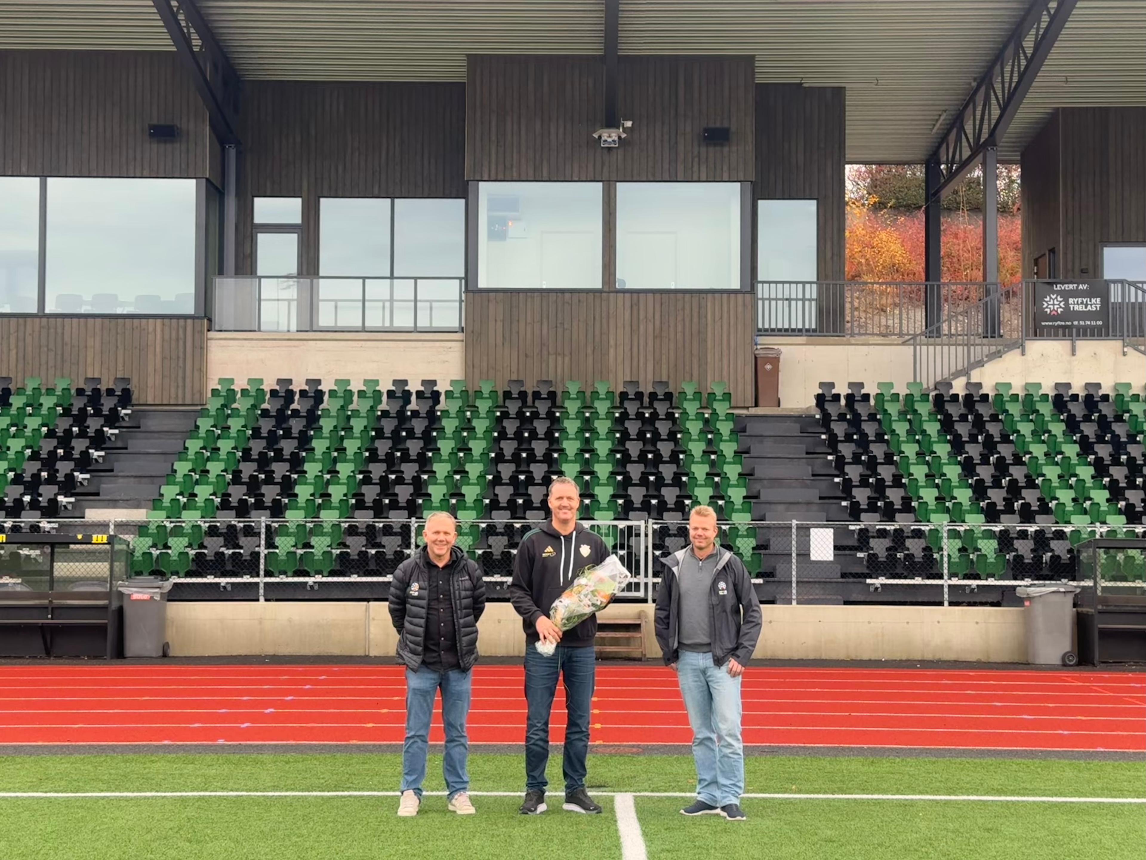 Prosjektet er ledet av Thor Magne Holta, med Oddvar som ansvarlig selger. Denne uken tok de turen innom anlegget for å gratulere Staal Jørpeland IL med det ferdige resultatet – og for en flott tribune det har blitt!