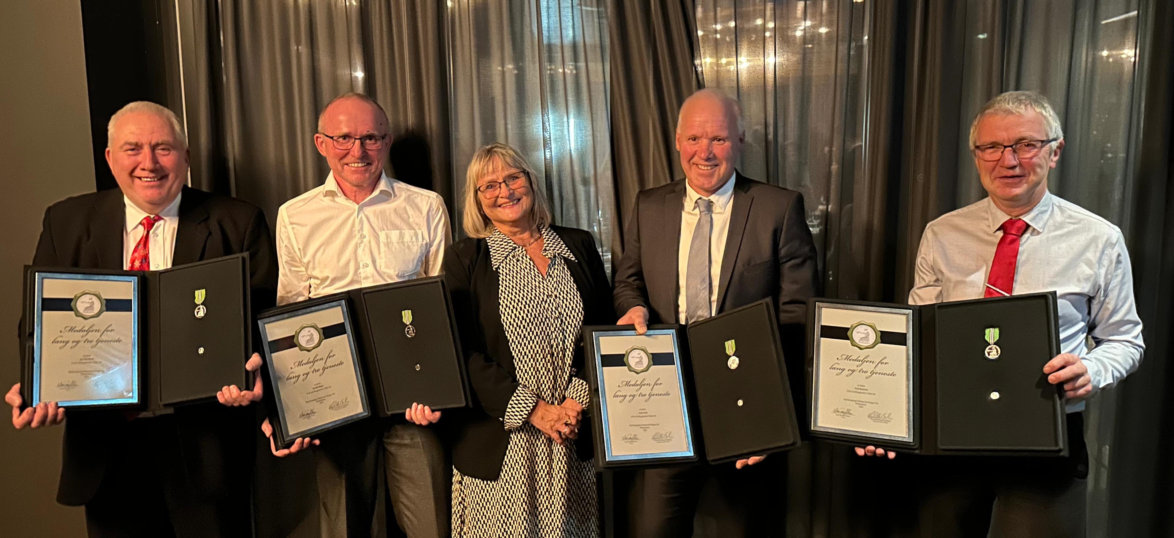 Bildet er fra desember 2024 hvor 6 ansatte (4 på bilde) ble utdelt fortjenestemedalje for lang og tro tjeneste, med til sammen mer en 200 år hos Byggmester Valde AS. Medaljene ble utdelt av datteren til Erling Valde, selskapets grunnlegger.