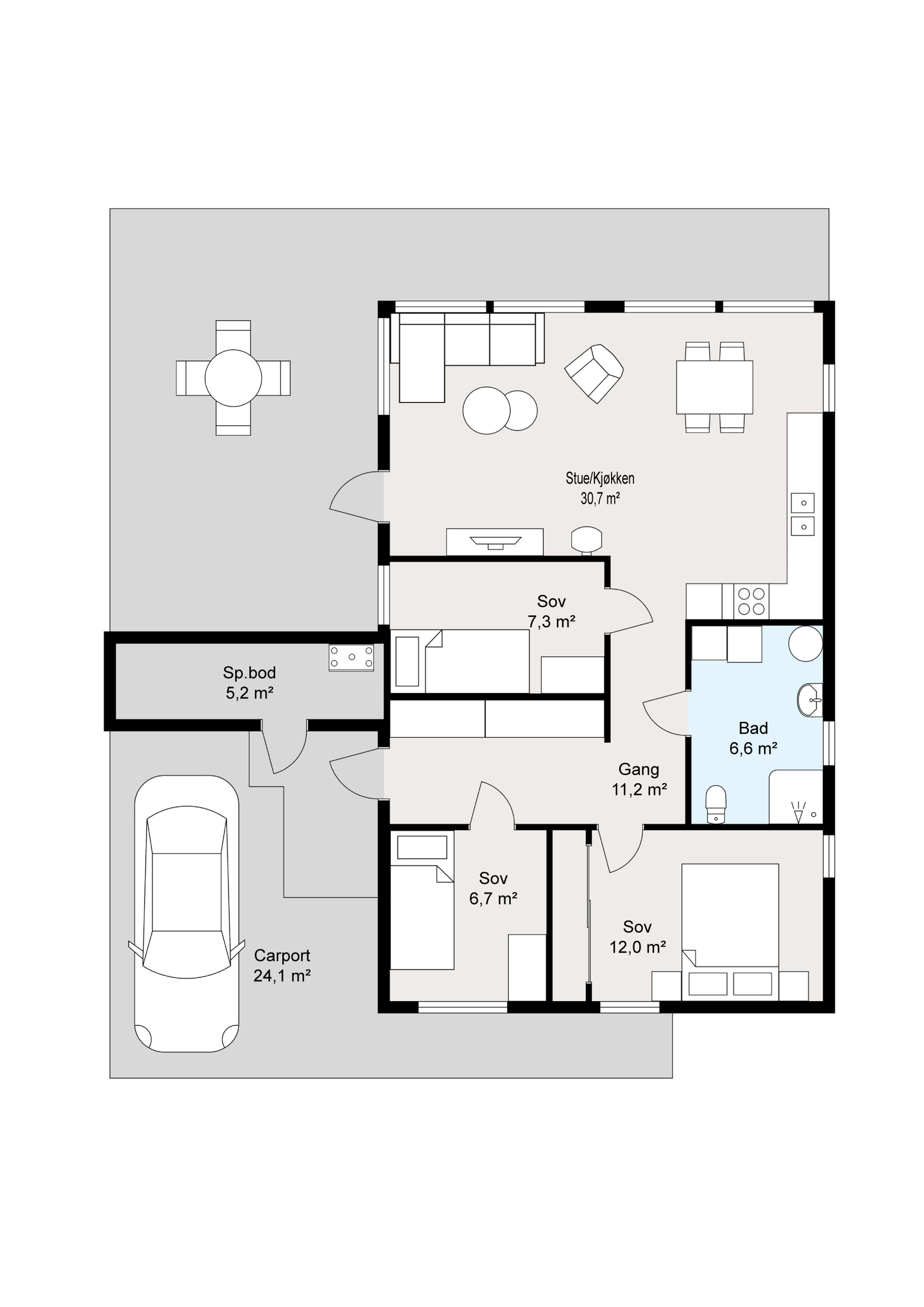 Carporten gir ikke bare bilen din beskyttelse, den gir også deg en trygg og komfortabel hverdag. Du går tørrskodd fra bilen og inn i huset, og både inngang og sportsbod er under tak. Det er praktisk, sikkert og gjennomtenkt – akkurat slik det skal være.