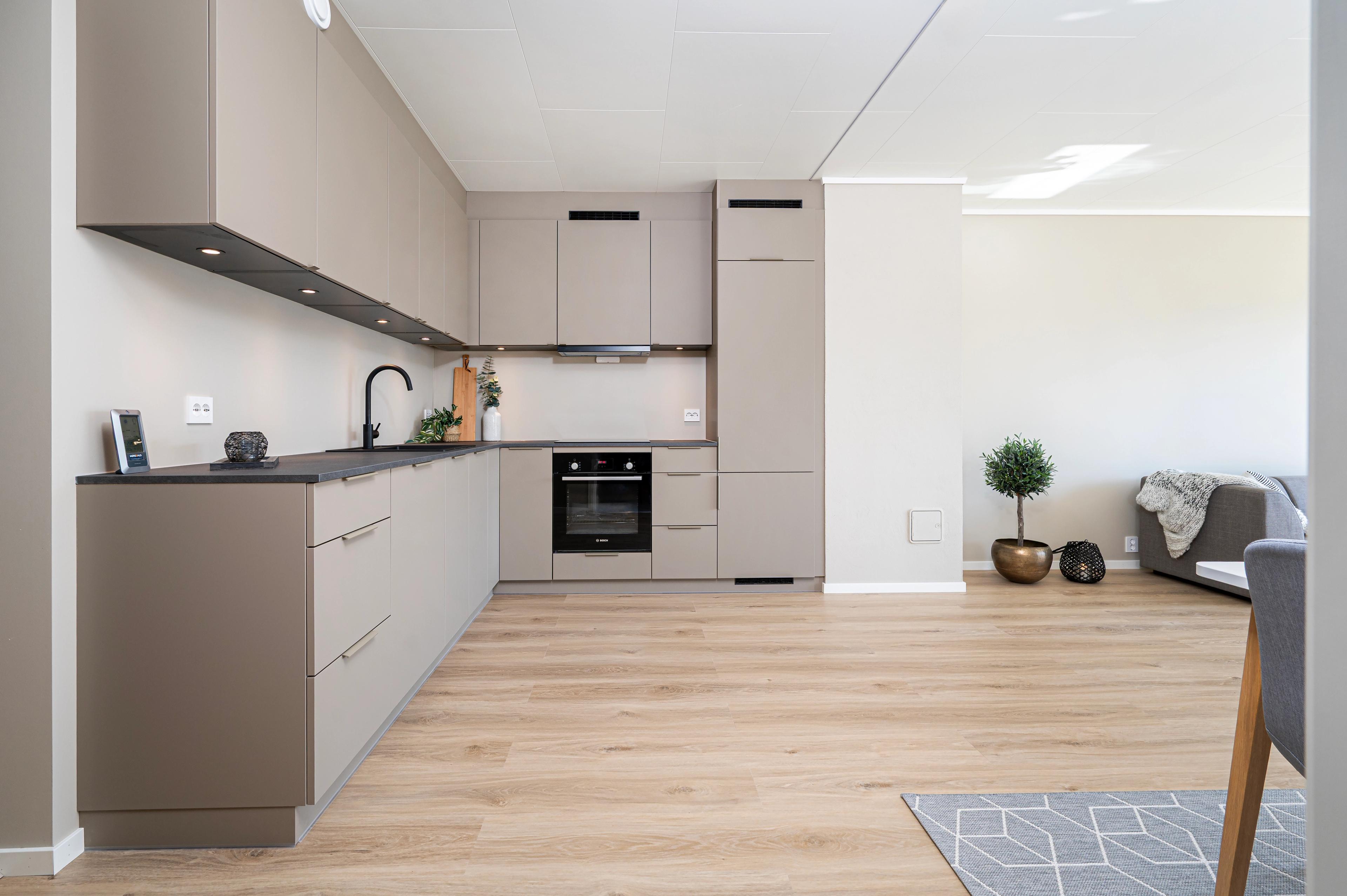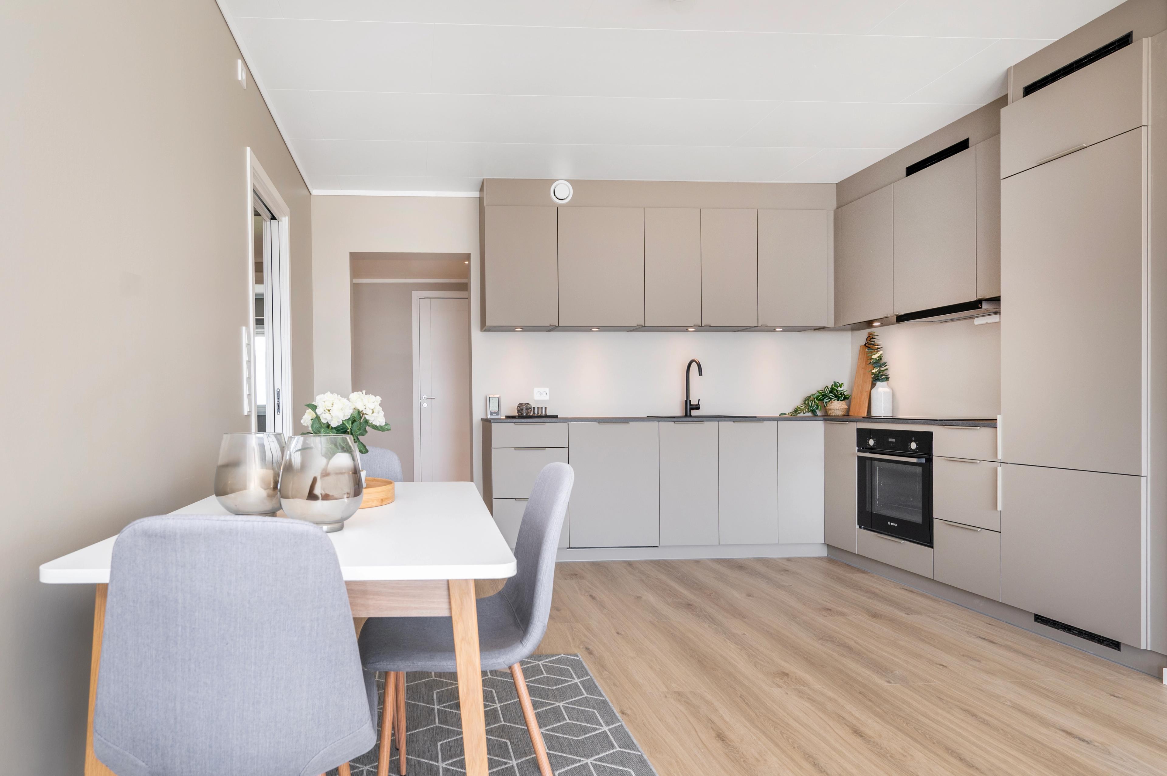 Leilegheitene kan leverast heilt eller delvis klar for innflytting mot avtalt tillegg. Ta kontakt for informasjon om prisar. Kjøpar vil sjølv kunne velje standard på veggar og golv, og om ønskjeleg velje anna kjøkken- og baderomsinnreiing enn den som er med i leveransen.