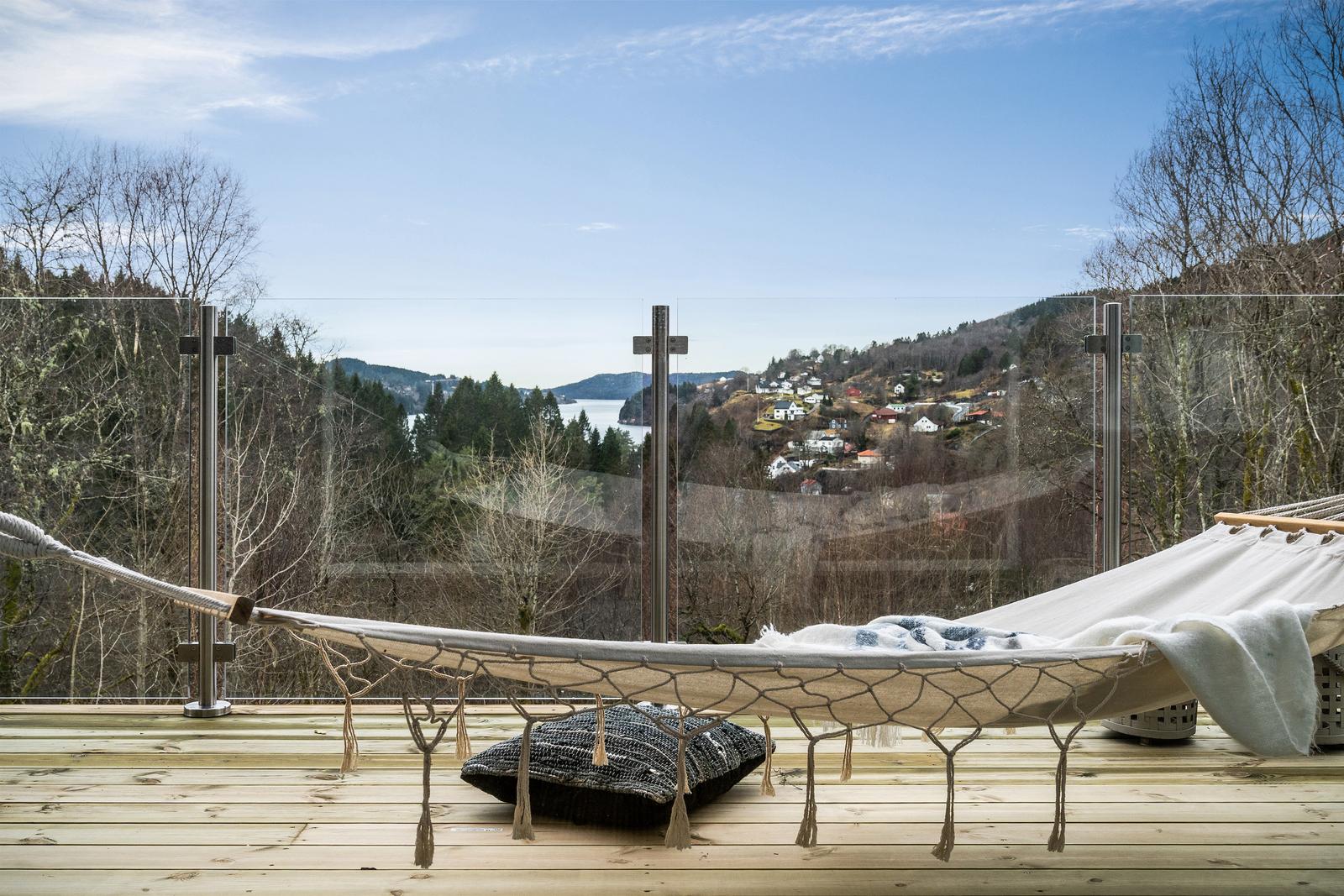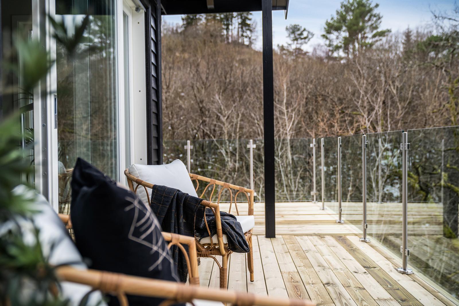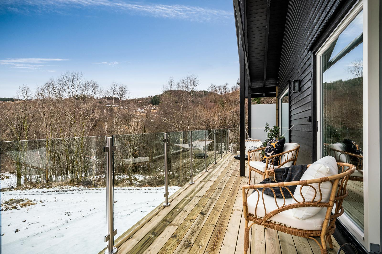 Stor ny terrasse som ligger skjermet til for innsyn: