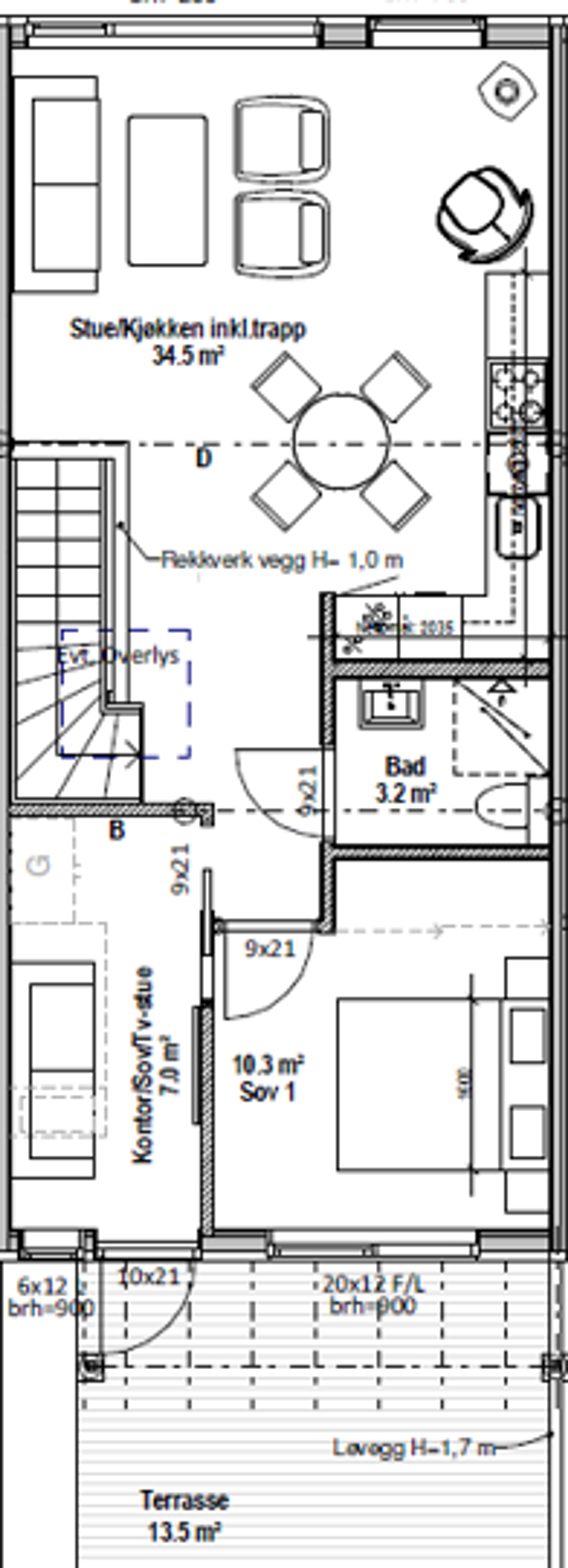 Boligene holder en moderne og gjennomgående god standard med parkettgulv i oppholdsrom og soverom, gipskledde vegger og himlinger samt slette innerdører. Åpen stue- og kjøkkenløsning gir gode lysforhold og fleksible møbleringsmuligheter. Hver bolig får privat terrasse med levegg, carport og egen sportsbod. Utvendig leveres boligene med royalimpregnert kledning og løsninger som gir lavt vedlikeholdsbehov.