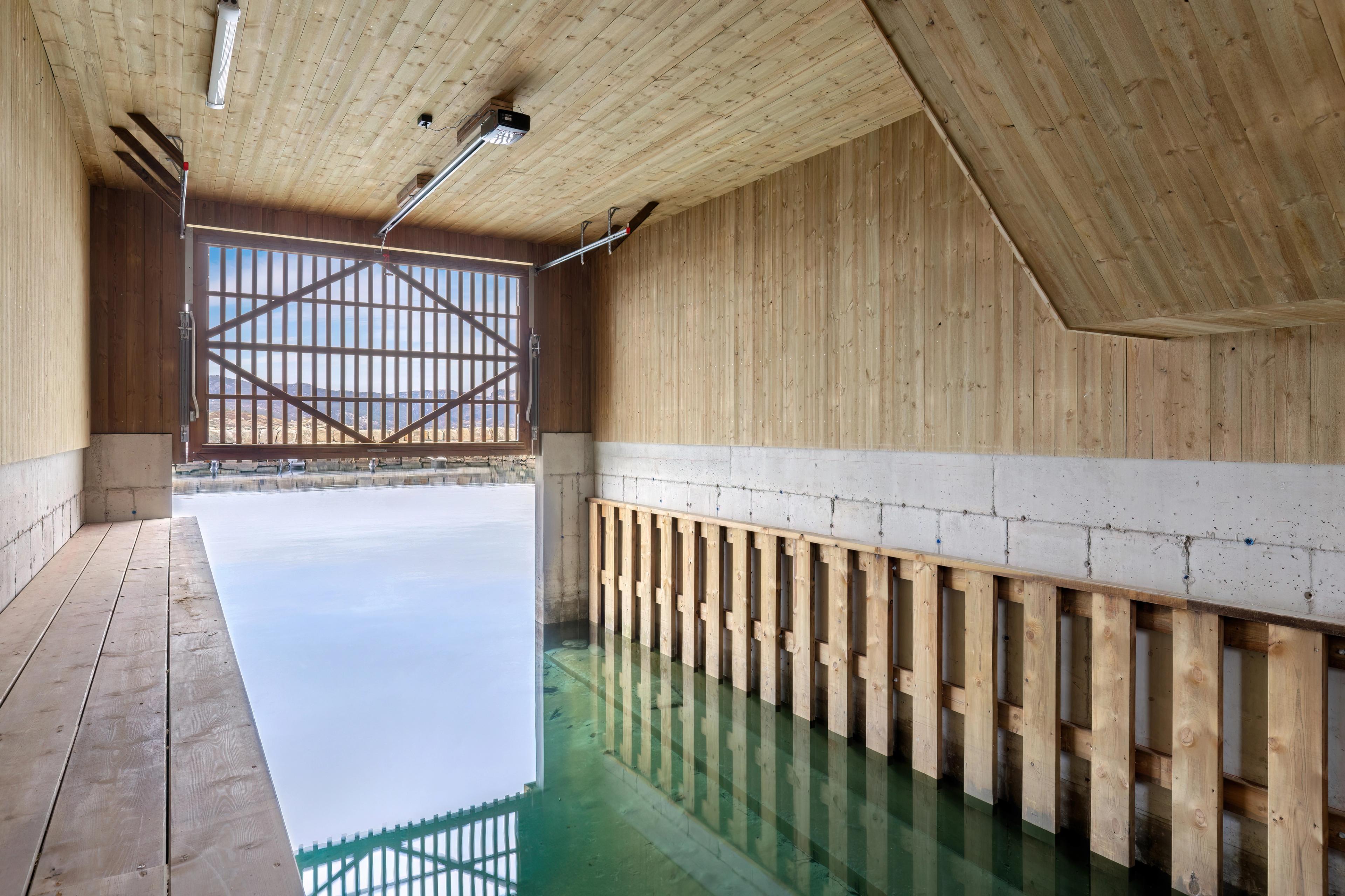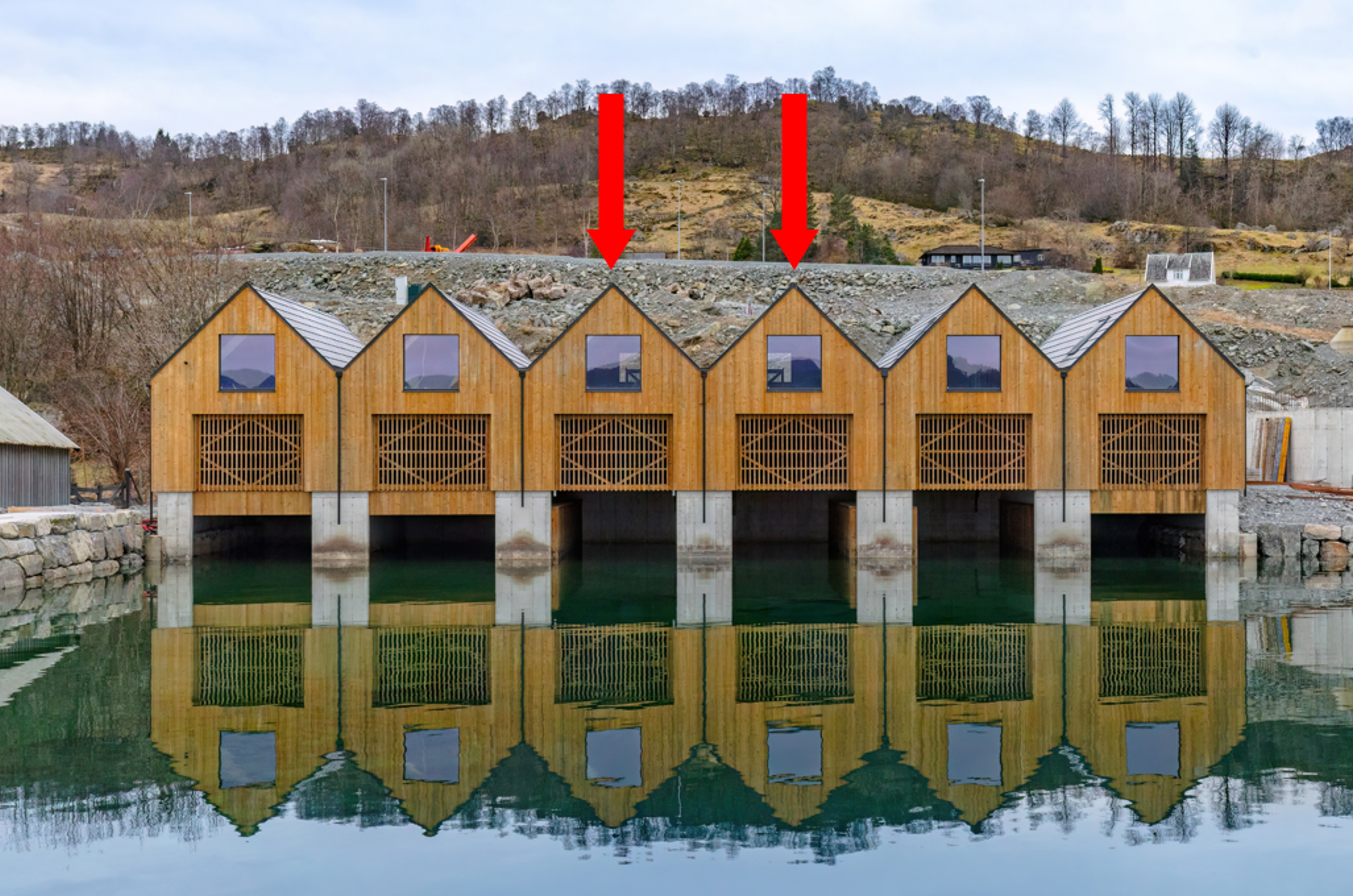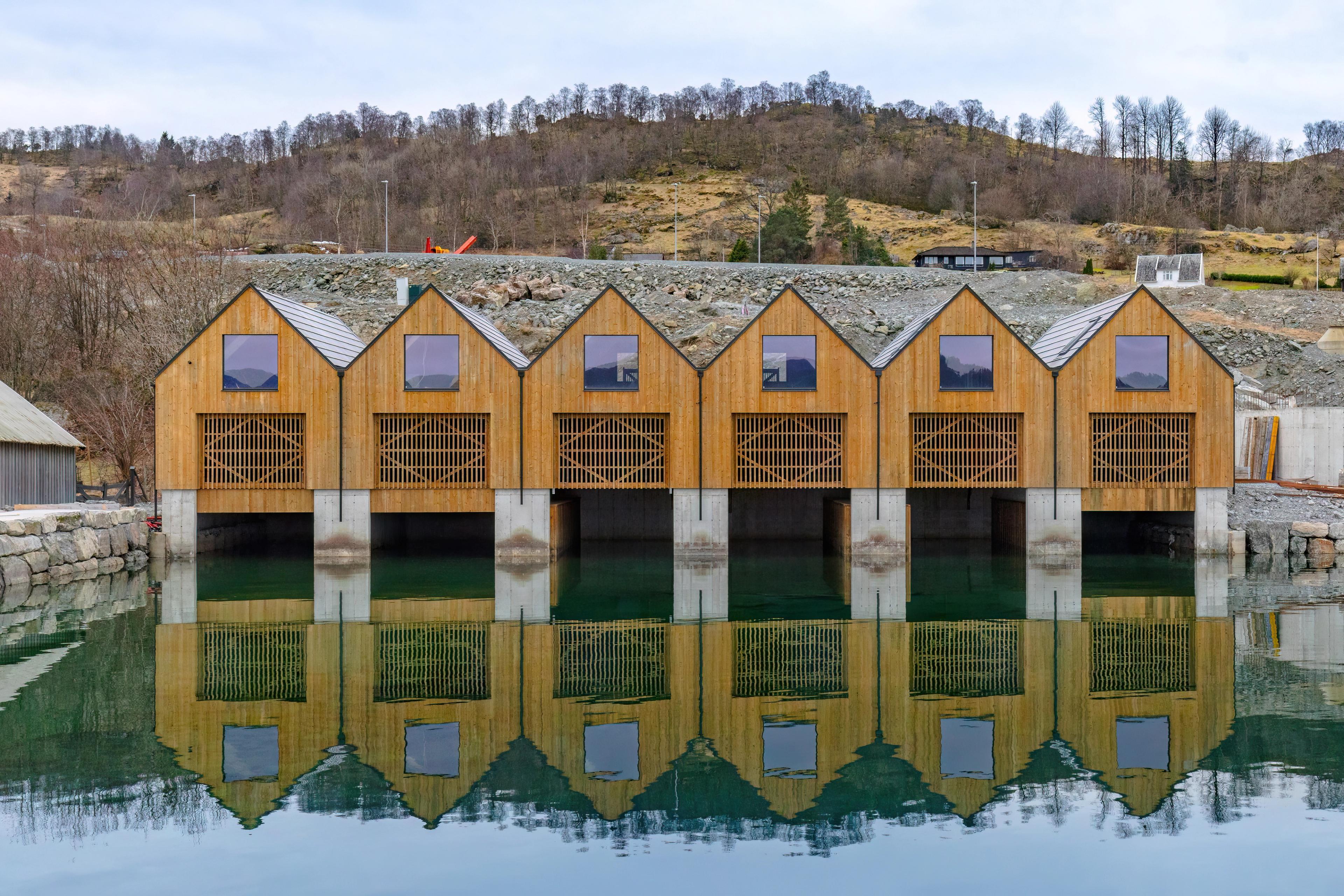 Båtgarasjene har plass til ca. 24fot i lengde og er bygget hovedsakelig i tre og betong med lett gjenkjennelig sjøhusarkitektur.