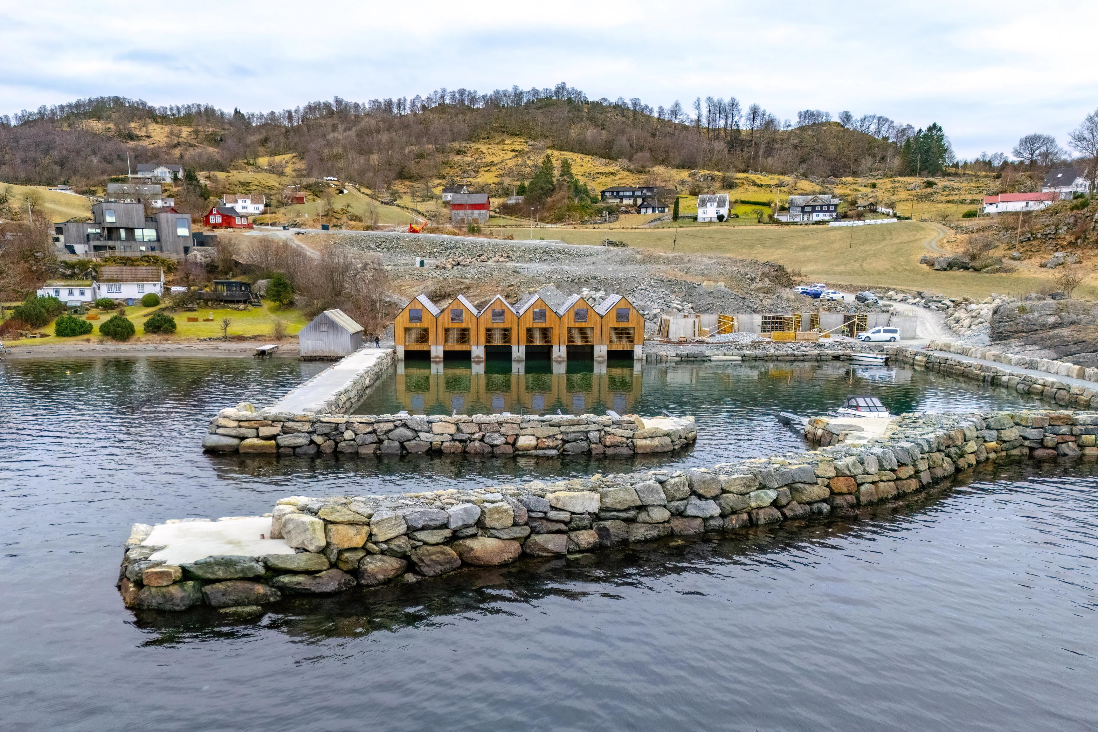 Akkurat nå bygges det naustboder og parkingsplass like ved båtgarasjene.