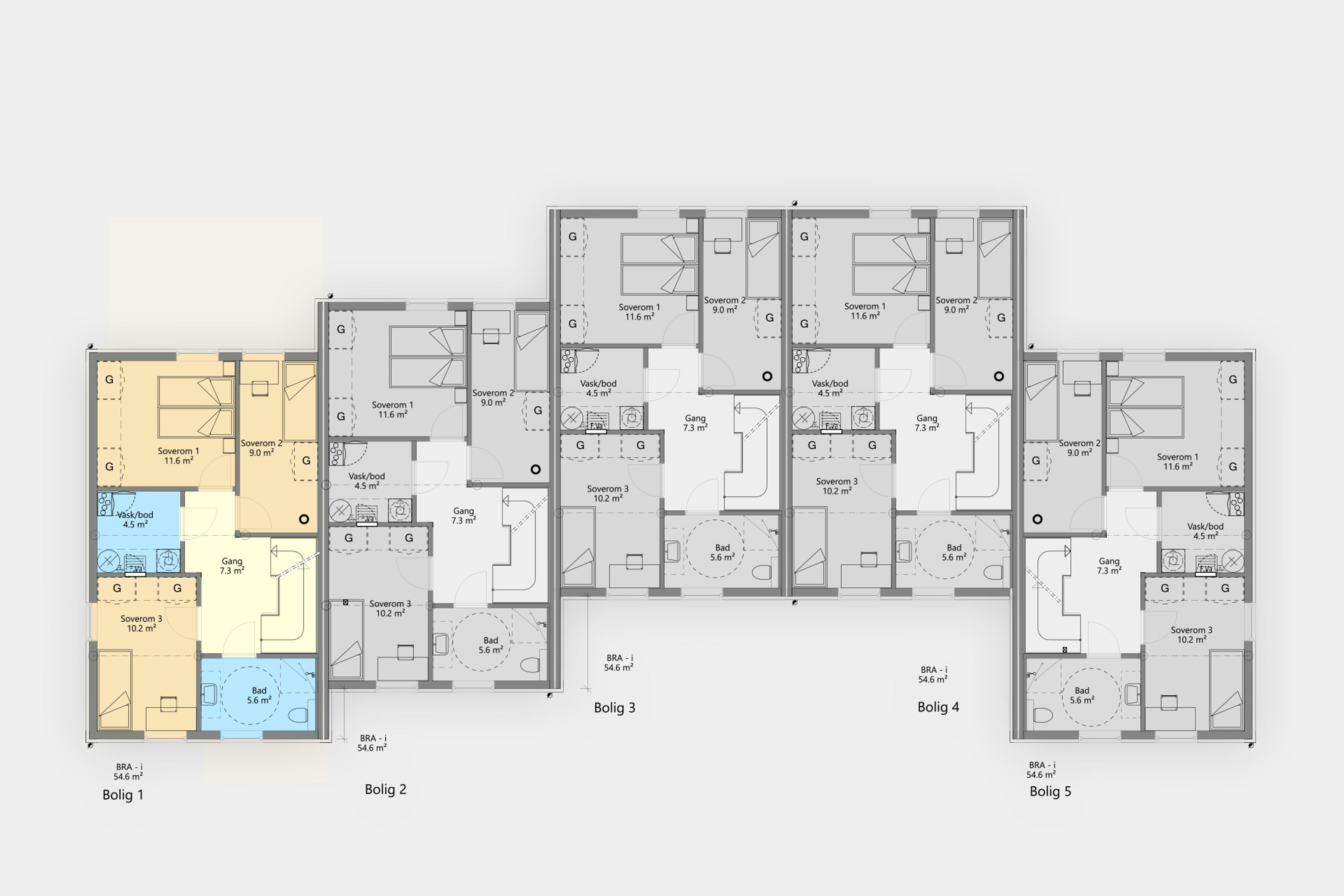 Tre gode soverom, familiebad og eget vaskerom/teknisk rom gir en praktisk og familievennlig løsning.