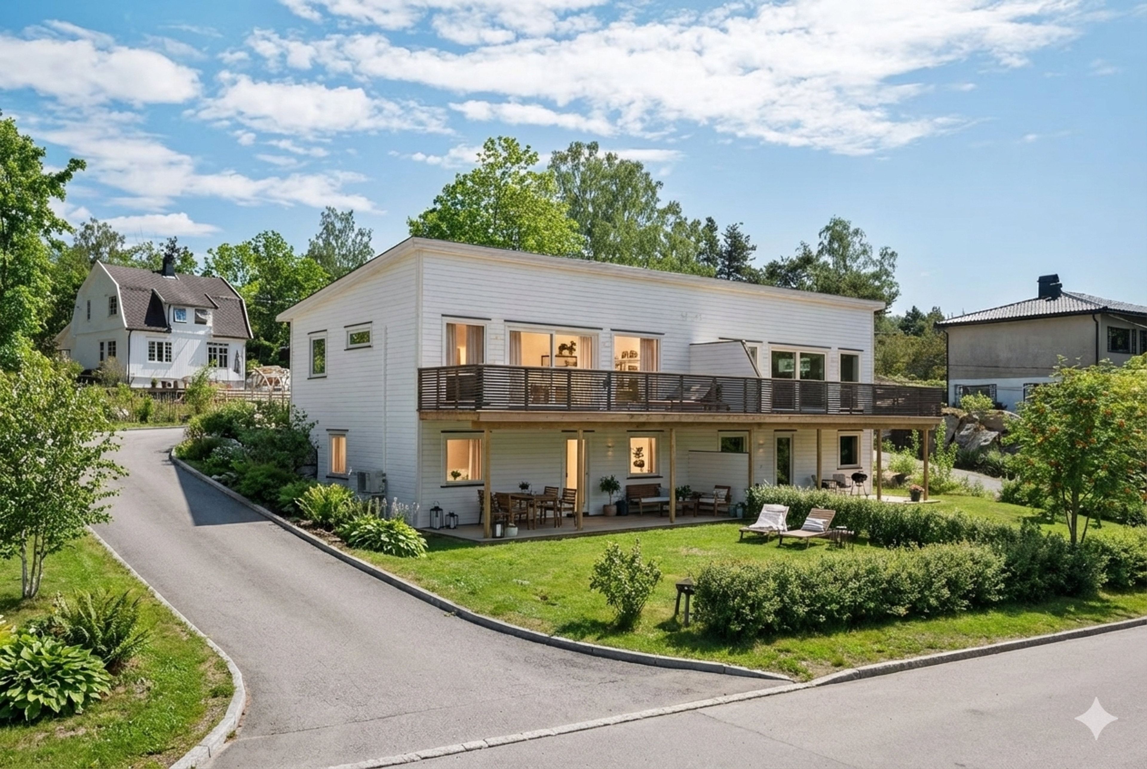Flott, moderne leilegheit med integrert carport på solrik tomt